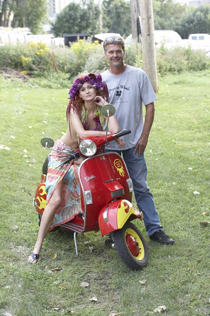scooter for a photo shoot.